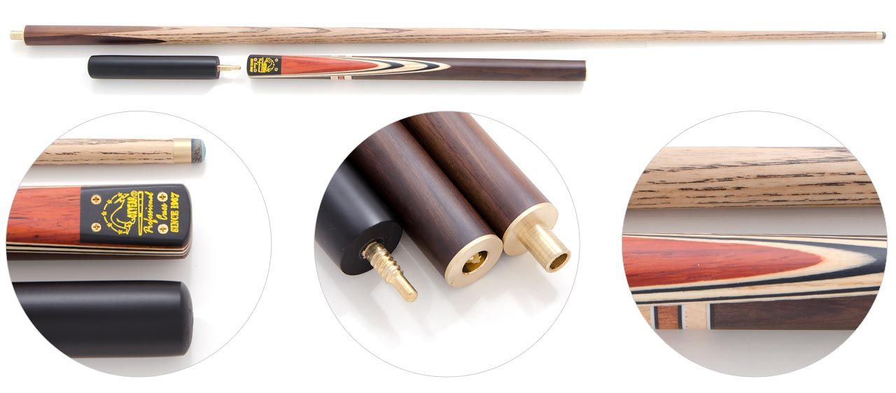 Традиционный кий для снукера делают из ясеня. Эту легкую и твердую древесину принято использовать на родине игры – в Англии, она вполне подходит для точных и быстрых ударов по небольшим шарам. При этом возможно использование и других материалов в виде основы или запилов – по их составу и количеству кий может повторять рисунок своих собратьев, участвующих в русской пирамиде.