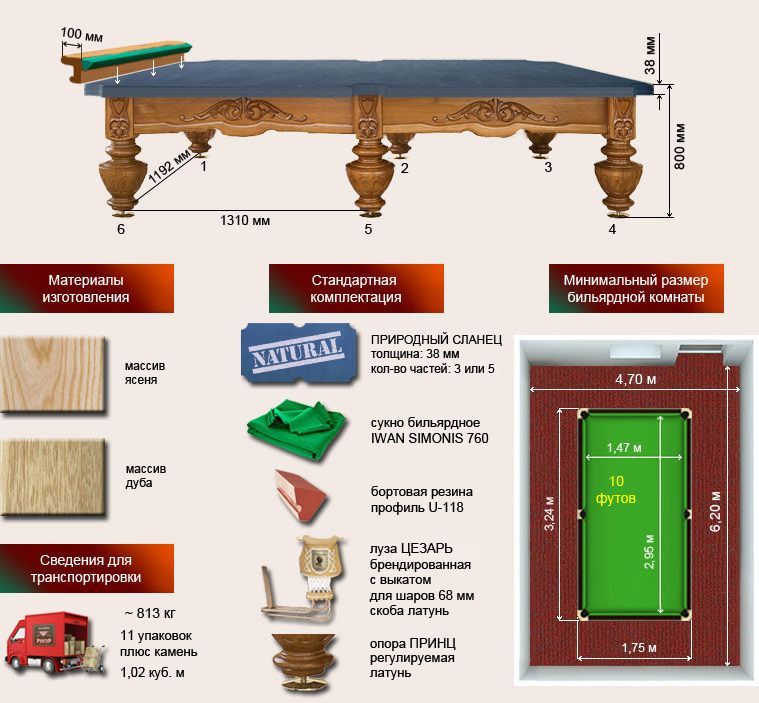 Гигант 12 футов с плитой весит тонну. Точно ли выдержит перекрытие этажа? «Десятку» реальней поставить даже в квартире. Разница всё ещё маловата. Но всё-таки выбор часто оказывается в пользу бильярда 10 футов.