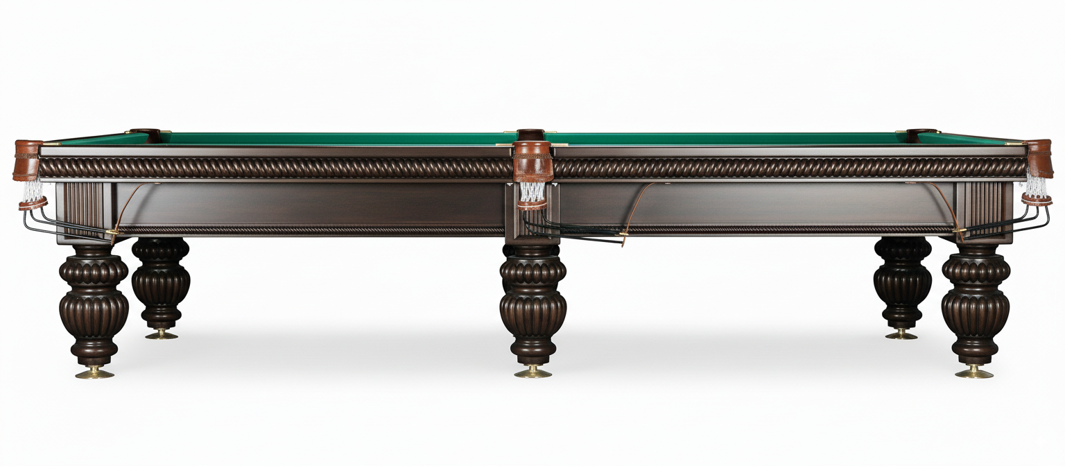 Карамболь — стандарт здесь 9 футов. Однако могут быть и другие: на 10 футов, к примеру.