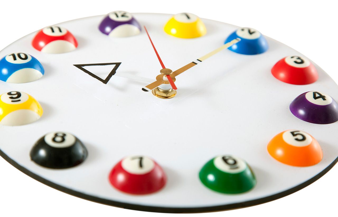 Для домашнего использования выгодно купить часы для бильярда, выполненные из пластика, цветовые решения которого могут быть самыми разнообразными.