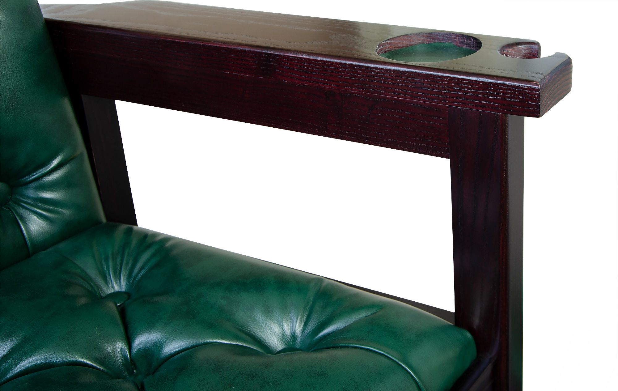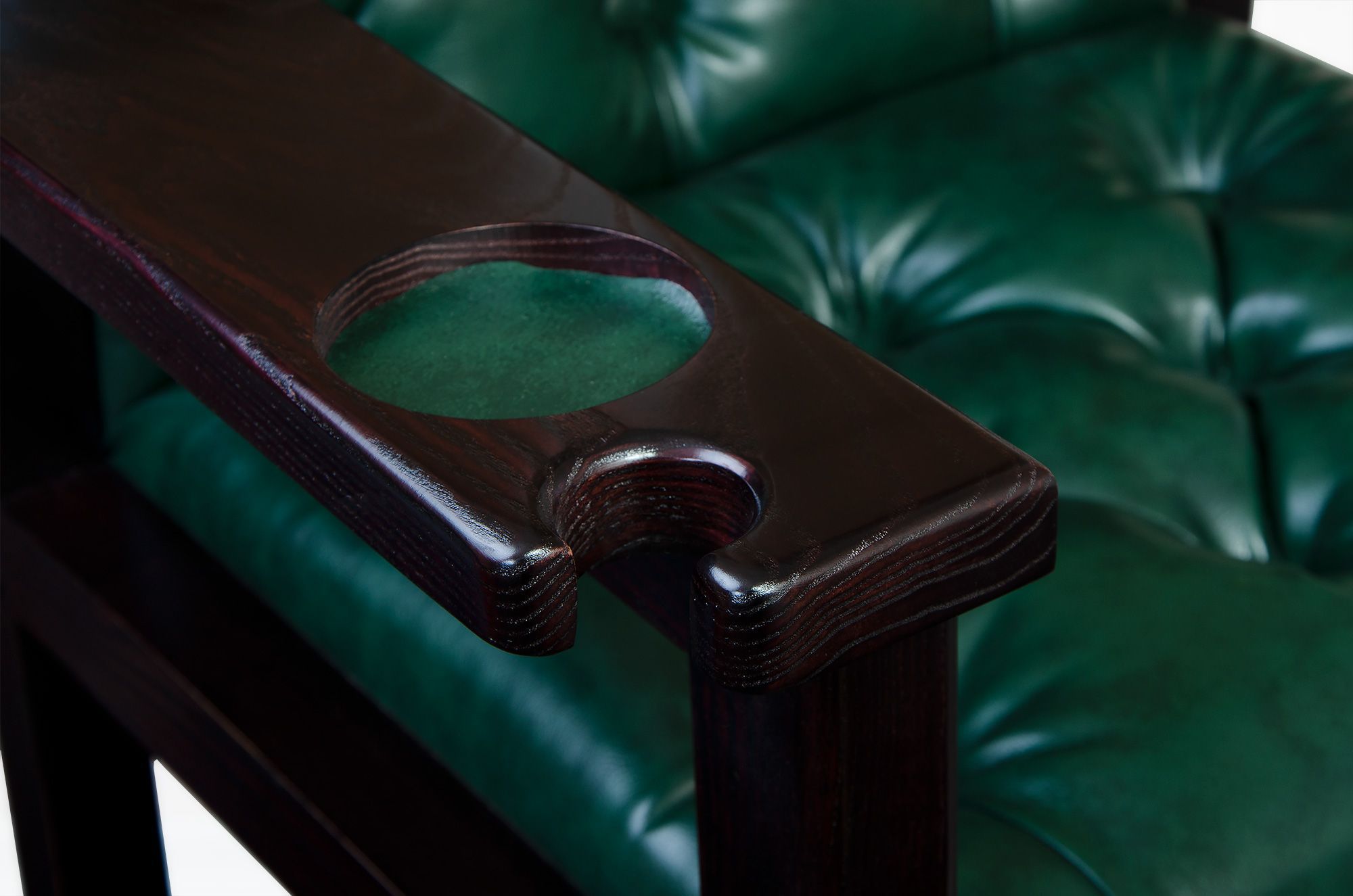 - Забота о вашем кие. В каждом из двух подлокотников предусмотрена специальная округлая выемка. Это не просто дизайнерский элемент, а продуманный фиксатор, который позволяет безопасно установить кий в вертикальном положении. Ваш инструмент всегда будет под рукой и в полной сохранности.