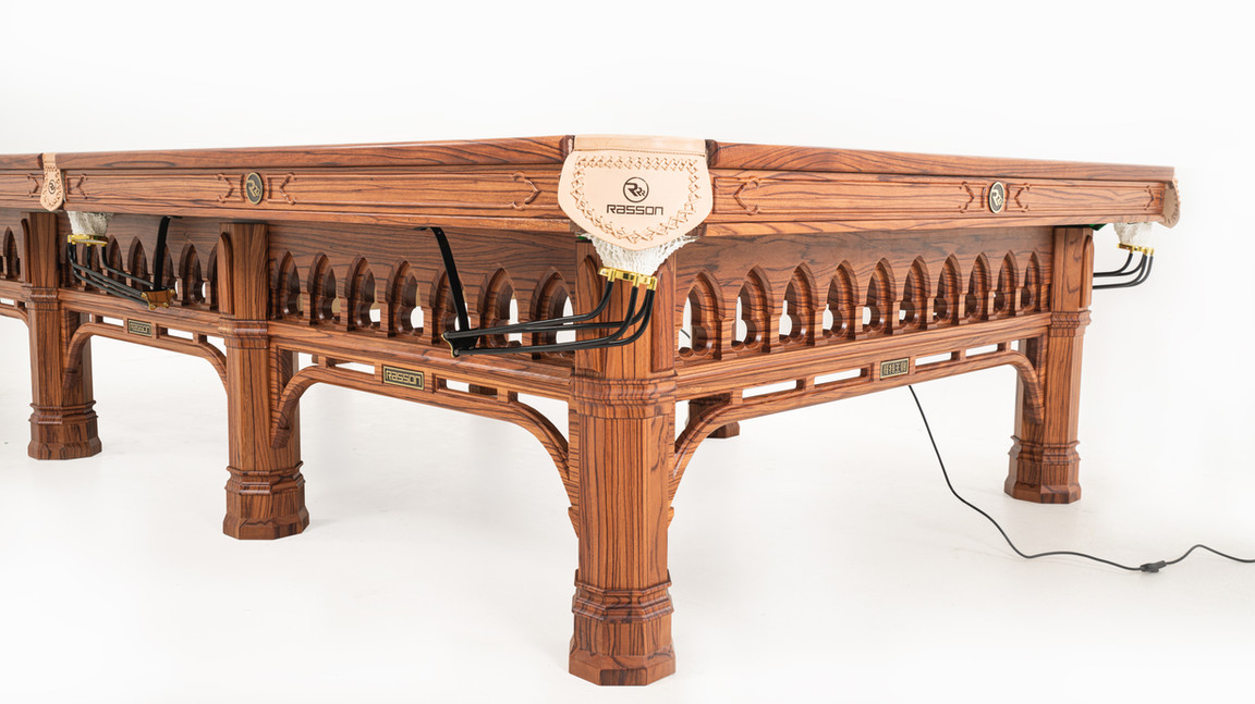 Профессиональный 12-ти футовый снукерный стол RASSON Gothic Dynasty создавался для игроков, которые ценят как эстетическую изысканность, так и идеальные условия для игры. Этот стол объединяет традиционные элементы дизайна с передовыми инженерными решениями, устанавливая новый стандарт в мире снукера.