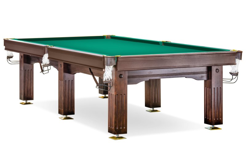 Зеленое сукно, монументальный дизайн из массива дерева в цвете "махагон" и кожаные лузы создают ощущение респектабельности. Этот стол — лучшее украшение интерьера.