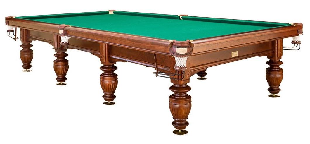 Отборный массив древесины — ставка на качество и долговечность изделия, а утонченный дизайн — демонстрация хорошего вкуса его обладателя. Сложная форма придает ногам видимую грацию. При этом высушенный по особой технологии массив дерева (ольхи, ясеня или дуба) с достоинством несет серьезный вес плит из натурального сланца. Профессиональные лузы органично вписываются в общую композицию за счет кожаных пелерин с декоративной шнуровкой, тиснением и перфорацией.