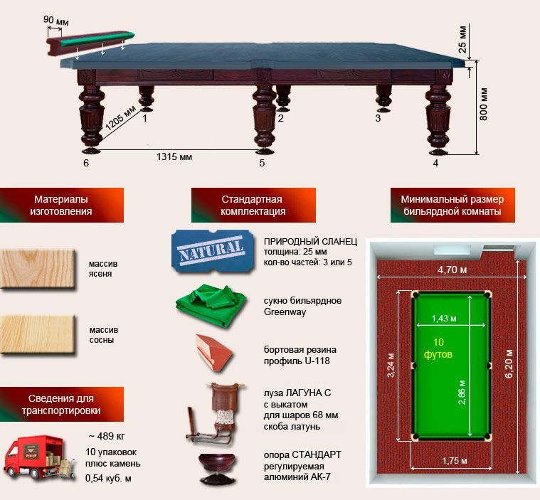 Спецификация бильярдного стола «Шевалье» 10 футов: