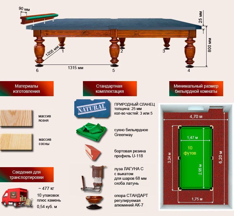 - Натуральные сланцевые плиты в сочетании с качественным сукном — залог оптимального раската шаров