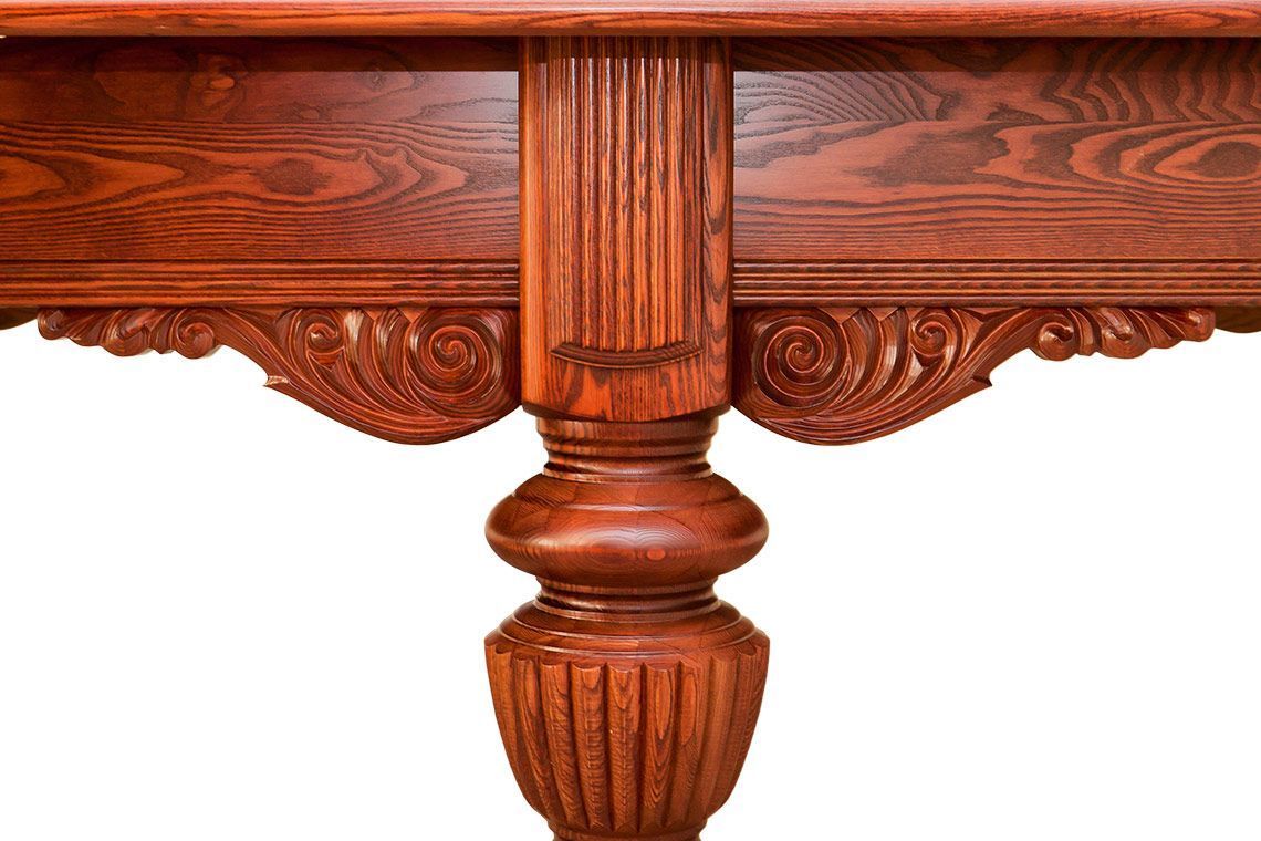 Бильярдный стол «Барон» — один из самых ярких и запоминающихся представителей коллекционной серии. Он отличается отборными материалами изготовления, великолепным оснащением и продуманным дизайном с большим количеством оригинальных элементов. Ноги стола выполнены из массива натуральной древесины и украшены изящными каннелюрами. Несмотря на пышный объем, они кажутся легкими и грациозными. Природную красоту дерева подчеркивает глубокий и выразительный резной орнамент.