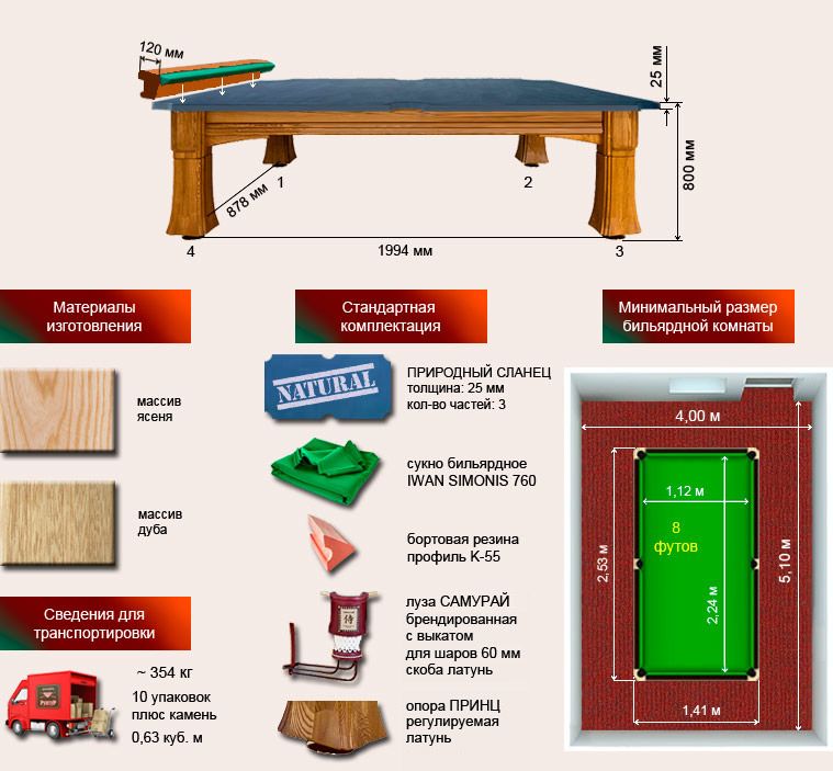 Спецификация бильярдного стола «Самурай» 8 футов: