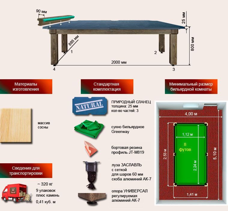 Спецификация стола «Паж-2» 8 футов: