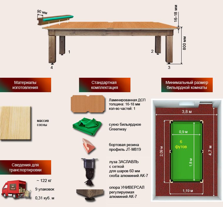 Надежность и практичность выгодно выделяют этот бильярд на фоне прочих бюджетных моделей.