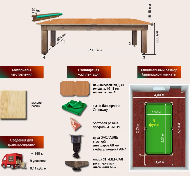 Спецификация стола «Паж» 9 футов: