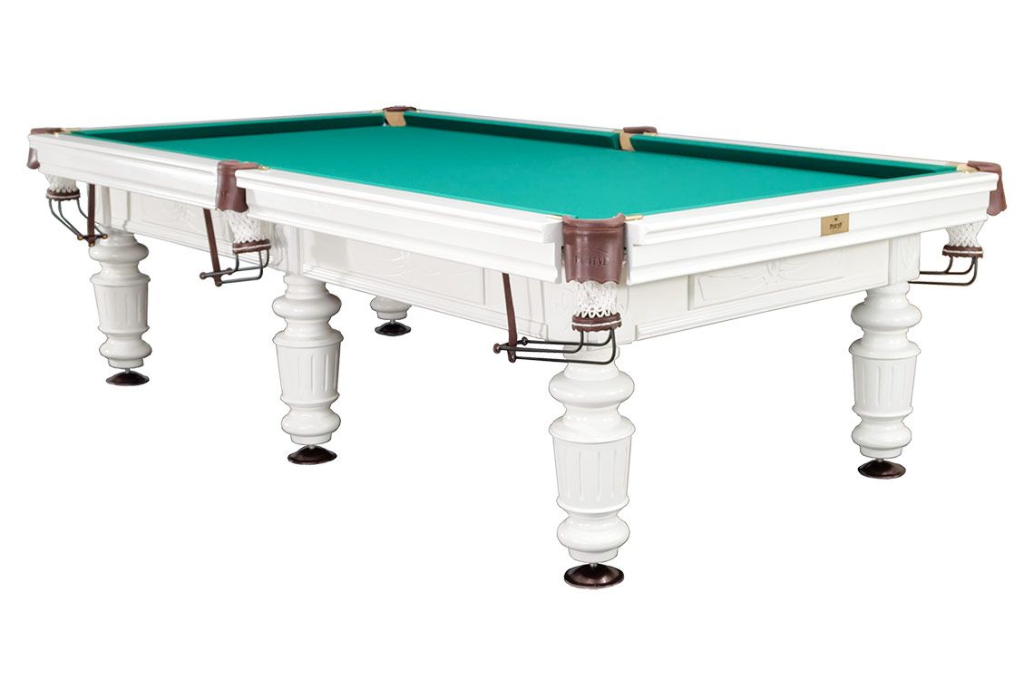 Стол «Шевалье» один из самых ярких представителей своей серии. Его конверты и царги лафета покрыты резьбой с элементами, стилизованными под старинный дворянский герб. Ноги из отборного массива сосны с легкостью несут мощный сосновый каркас и плиты натурального сланца. При этом они выглядят весьма грациозно за счет точеного рельефа и вертикальных резных канавок. Прочные опоры ног, борта из ясеня, лузы с кожаными пелеринами, качественное сукно — недорогая стандартная комплектация оптимальна для организации домашнего бильярда.
