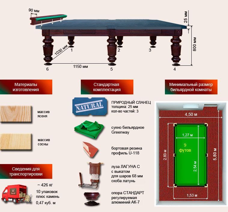 Спецификация бильярдного стола «Шевалье» 9 футов: