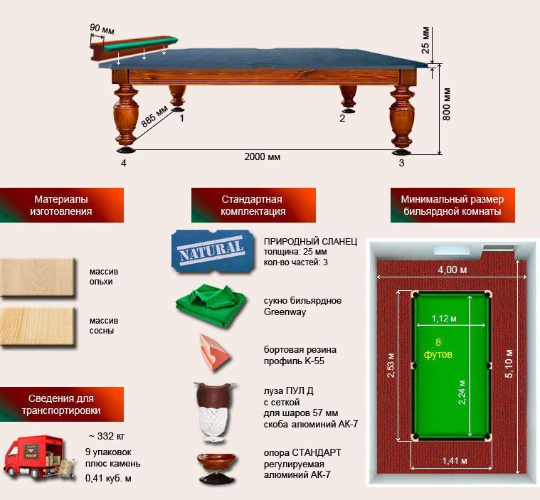 • Натуральные сланцевые плиты в сочетании с качественным сукном — залог оптимального раската шаров