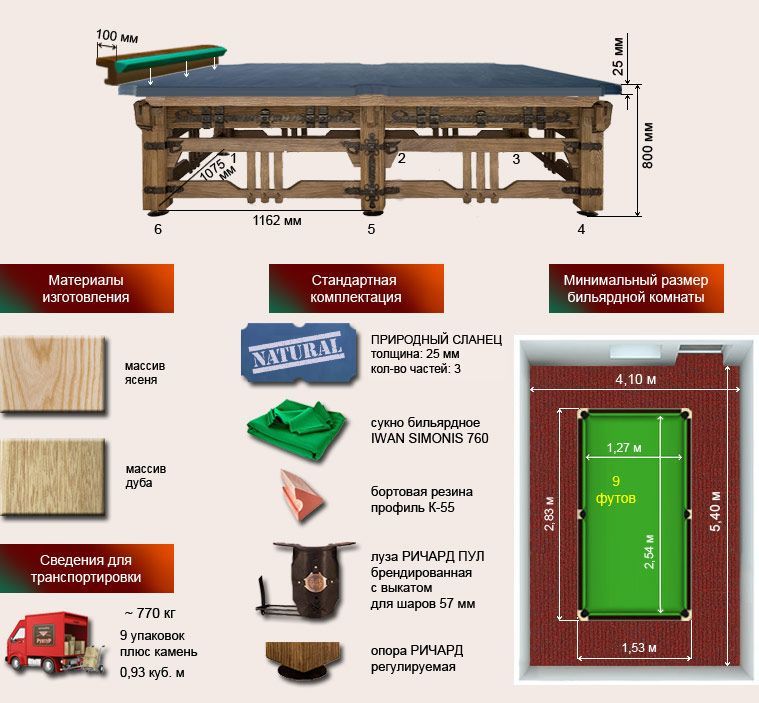 Спецификация бильярдного стола «Ричард III» 9 футов: