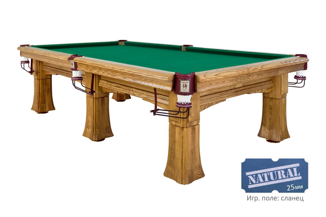 Коллекционный бильярдный стол «Самурай» — это лаконичность каждого из элементов, которые вместе создают ощущение единства и гармонии. Мощные ноги из отборного массива дуба или ясеня напоминают очертания древних восточных храмов. Кожаная пелерина с иероглифом названия серии создана по мотивам традиционных доспехов древних воинов.
