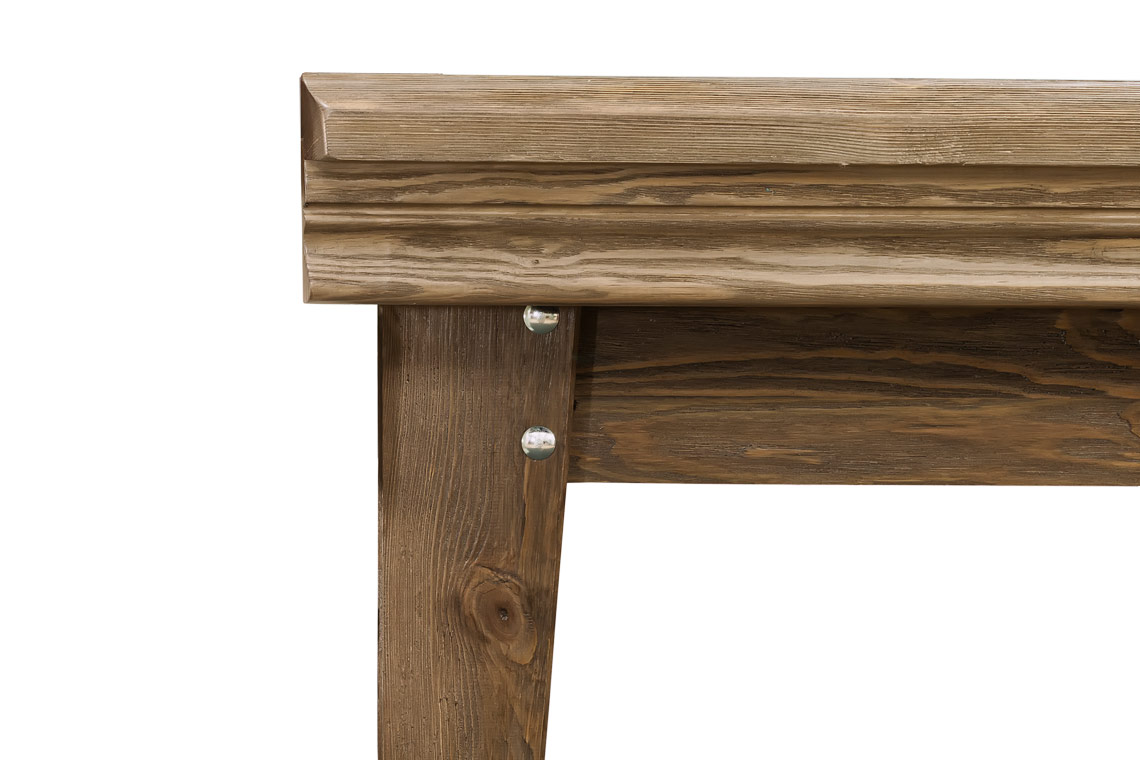 - Практичность и надёжность. Каркас и борта стола выполнены из сосны, что обеспечивает конструкции устойчивость. Важная деталь: материалы не боятся умеренных перепадов температур, что делает эту модель идеальным выбором для загородного дома или крытой веранды.