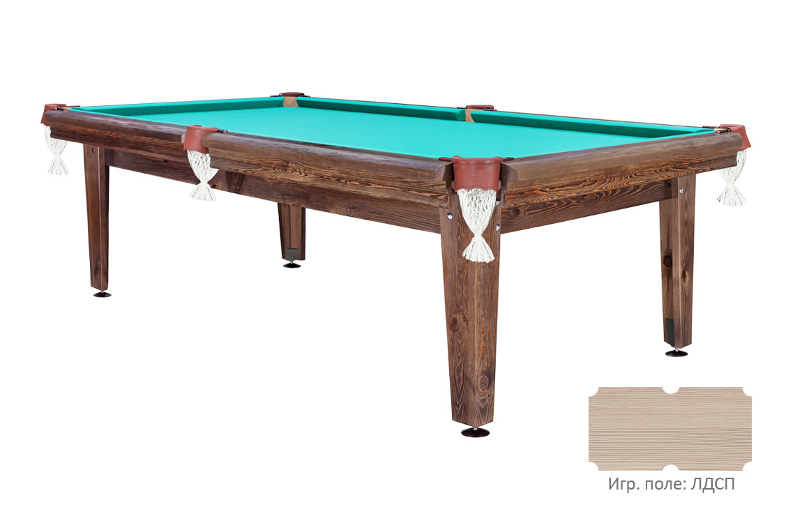 - Качественное игровое поле из ЛДСП. Это современное и практичное решение, которое обеспечивает хороший раскат шара. При этом стол с плитой из ЛДСП значительно доступнее аналогов на натуральном камне и менее требователен к условиям эксплуатации.
