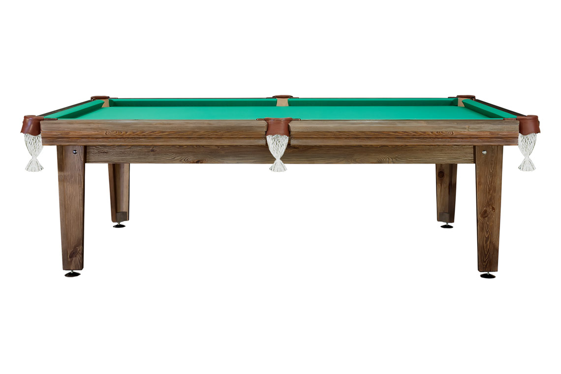 - Игровое поле: 8 футов (254 х 142 см). Это классический и самый популярный размер для американского пула, который комфортно размещается во многих помещениях. Рекомендуемый минимальный размер комнаты — 554 х 443 см.