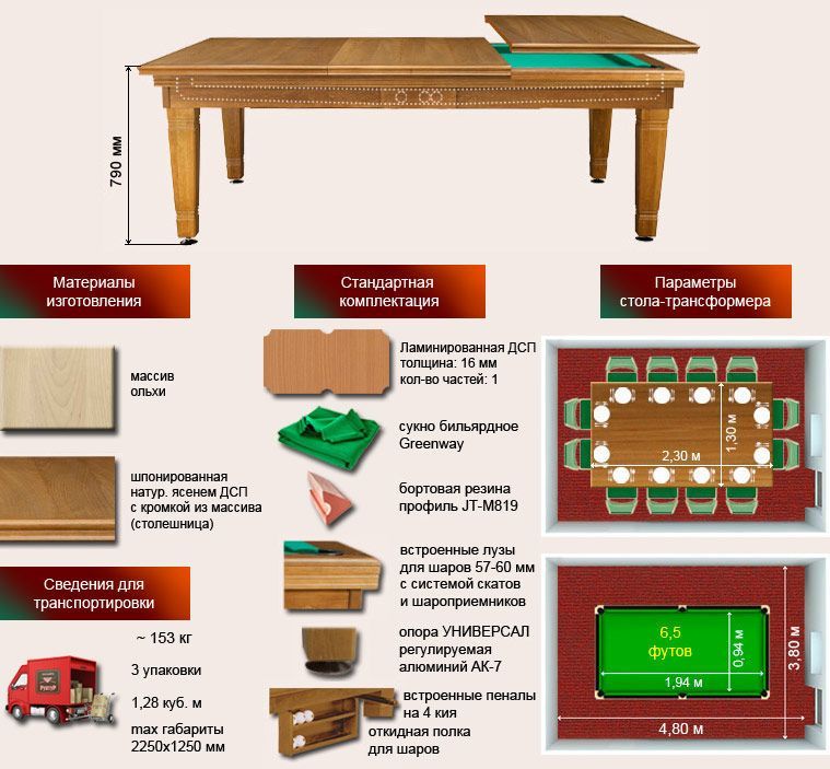 Преимущества обеденно-бильярдного стола «Эльзас-2»: