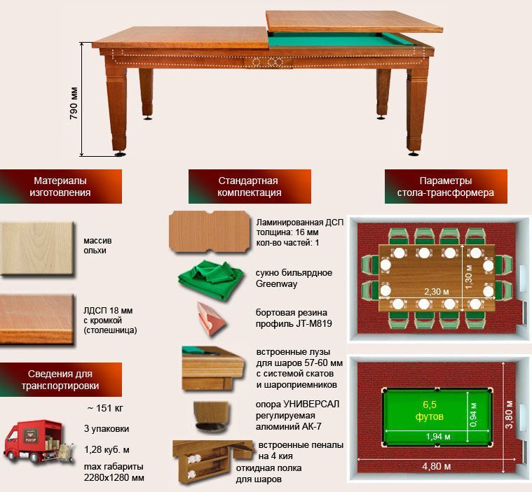 Бильярдный стол-трансформер «Эльзас»: элегантный ужин и азартная партия в одной комнате